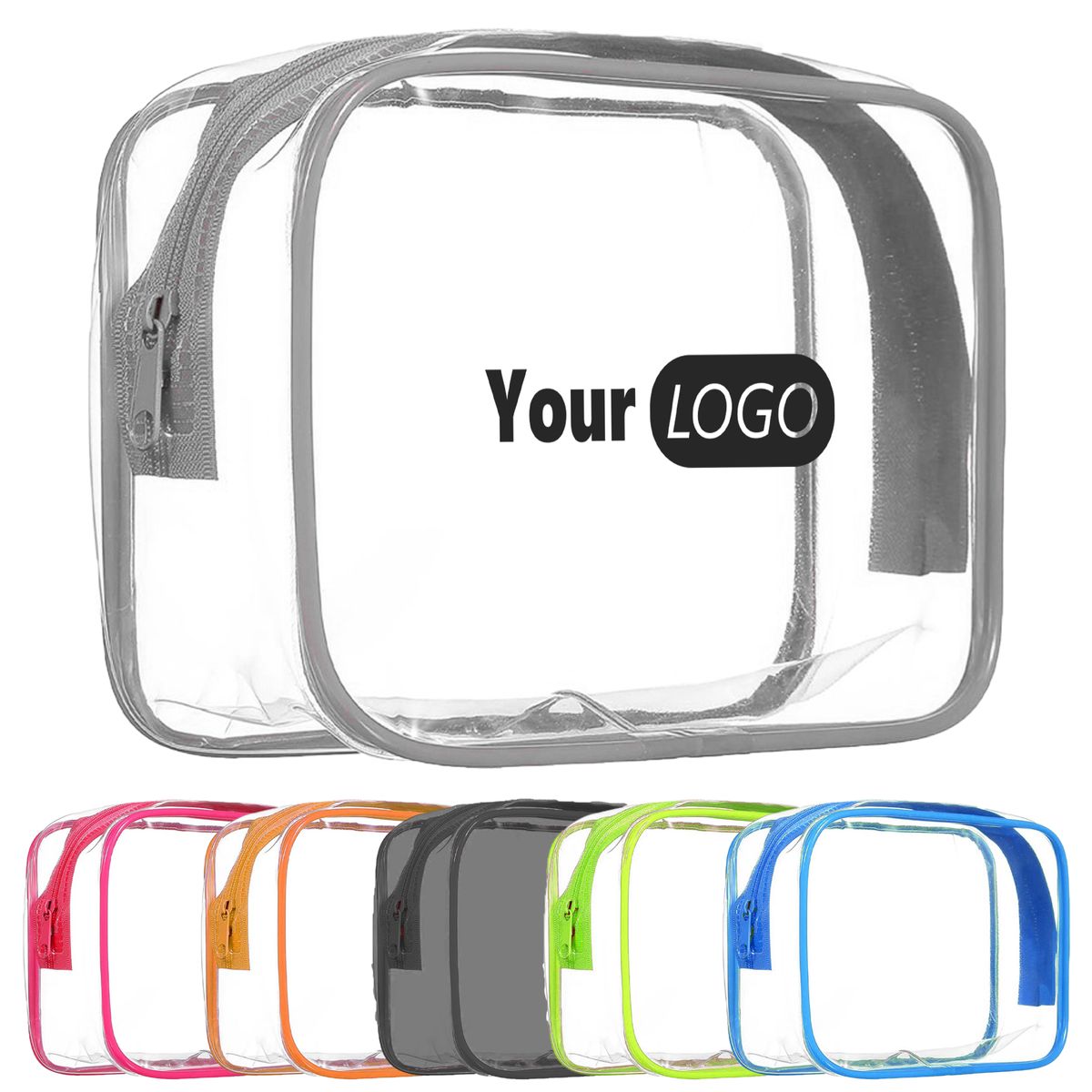Keep your essentials organized and accessible with this clear PVC cosmetic organizer bag. The transparent design allows you to see all your items at a glance, saving time and reducing stress during travel or daily use. The bag features a durable zipper closure and reinforced edges in multiple color options, adding a stylish touch while ensuring longevity. Ideal for storing cosmetics, toiletries, or travel items, this compact bag fits easily in suitcases, backpacks, or gym bags. Customizable with your logo, it's a versatile choice for personal use or as a branded giveaway for clients.
